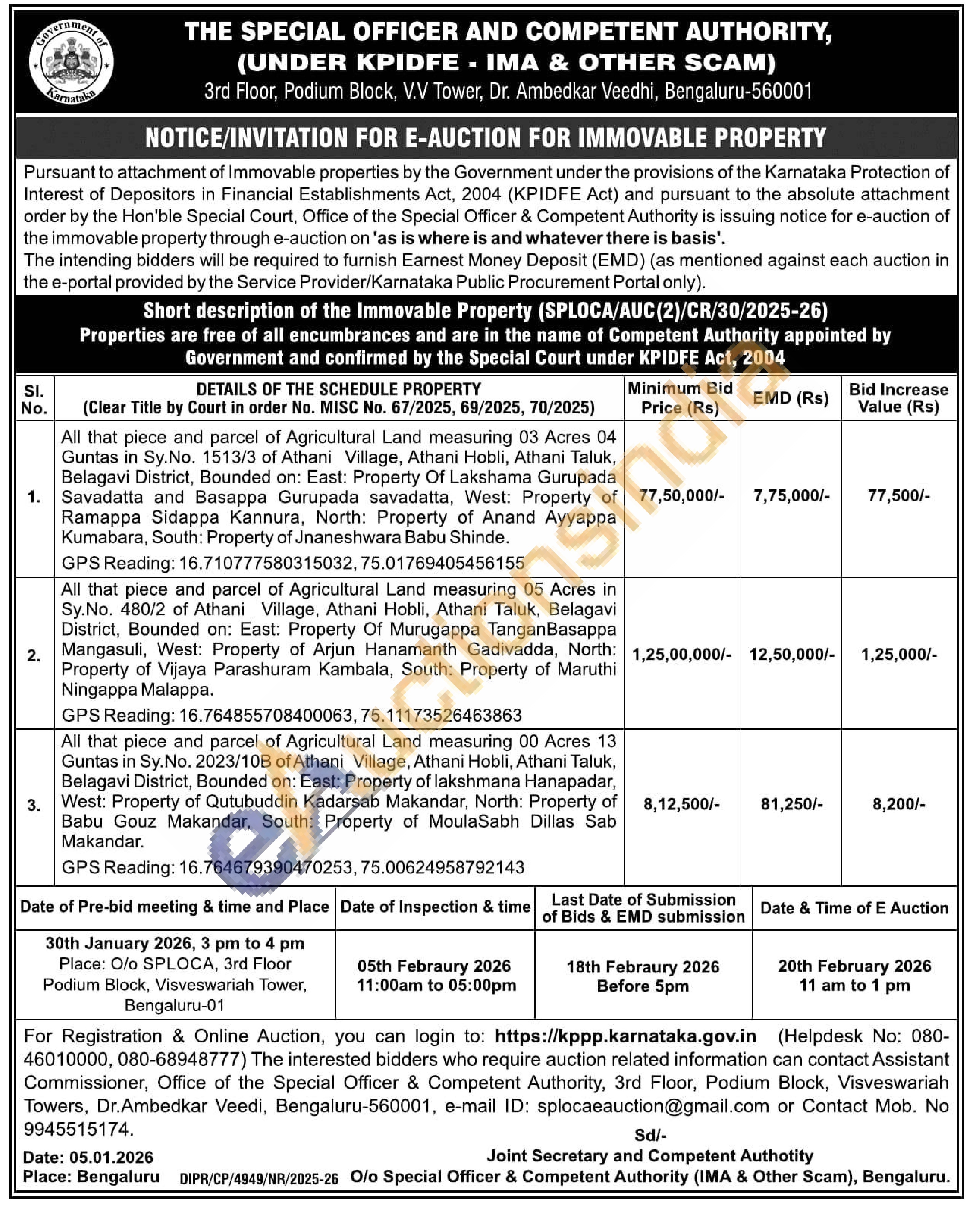 All that piece and parcel of Agricultural Land measuring 05 Acres in Sy.No. 480/2 of Athani Village, Athani Hobli, Athani Taluk, Belagavi District, Bounded on: East: Property Of Murugappa Tangan Basappa Mangasuli, West: Property of Arjun Hanamanth Gadivadda, North: Property of Vijaya Parashuram Kambala, South: Property of Maruthi Ningappa Malappa.