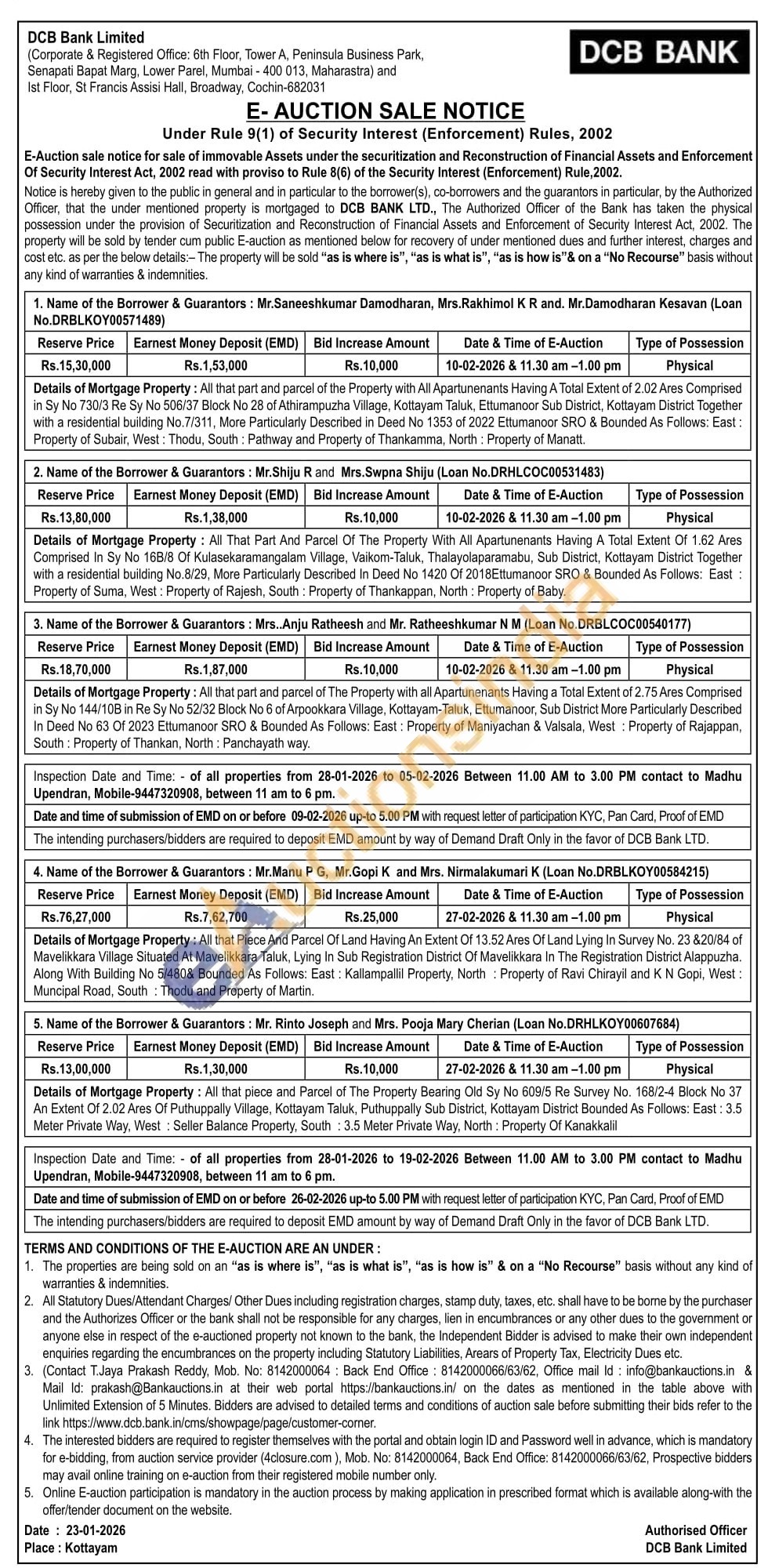 Details of Mortgage Property: All that piece and Parcel of The Property Bearing Old Sy No 609/5 Re Survey No. 168/2-4 Block No 37 An Extent Of 2.02 Ares Of Puthuppally Village, Kottayam Taluk, Puthuppally Sub District, Kottayam District Bounded As Follows: East: 3.5 Meter Private Way, West Sellier Balance Property, South: 3.5 Meter Private Way, North: Property Of Kanakkalil
