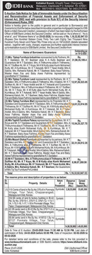 115 Cents of land in Re Sy No 376 of in Ponmala Village, Tirur Taluk, Chappanangadi, Malappuram Dist, Kerala
