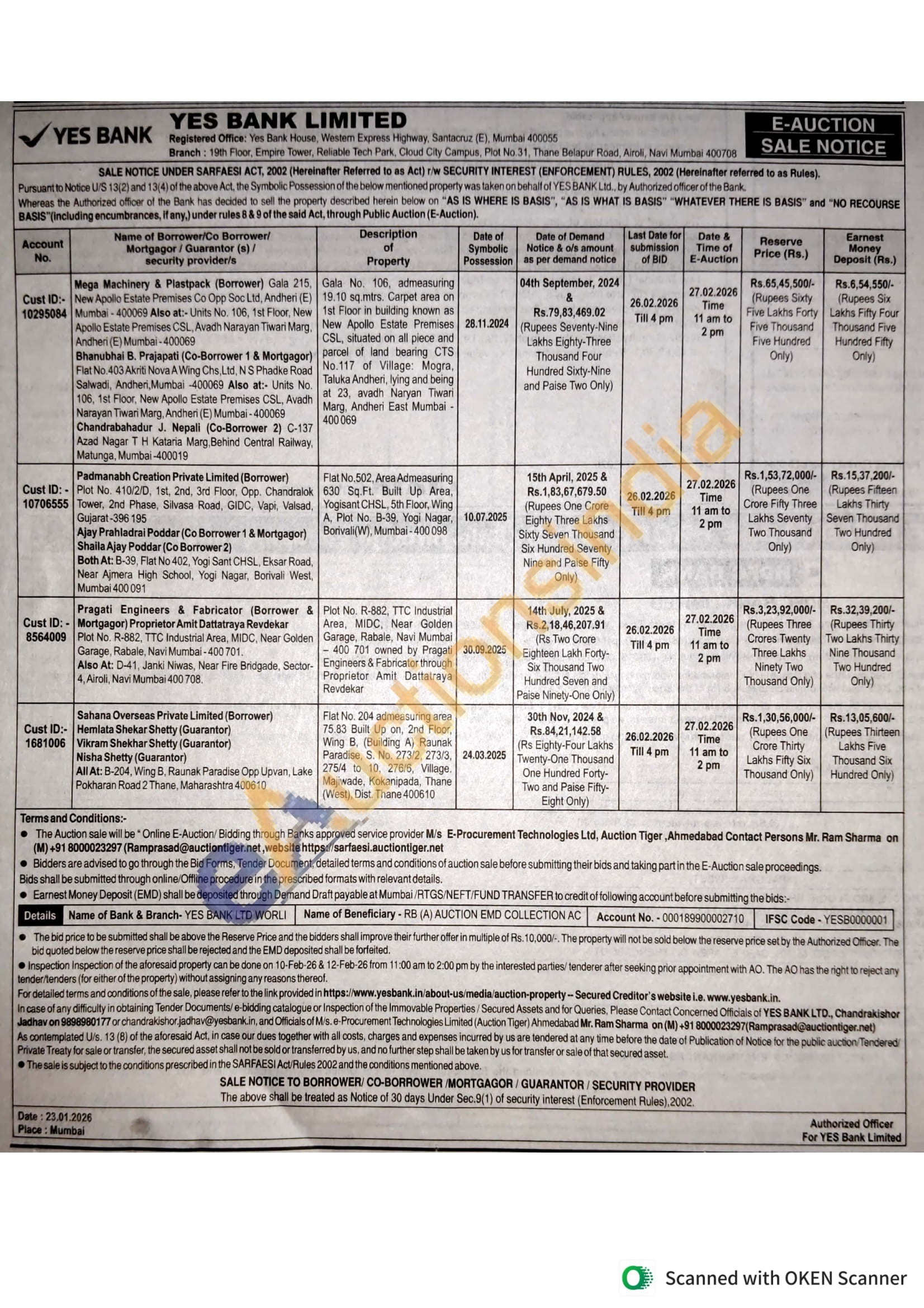 Flat No.502, Area Admeasuring 630 Sq.Ft. Built Up Area, Yogisant CHSL, 5th Floor, Wing A, Plot No. B-39, Yogi Nagar, Borivali(W), Mumbai-400 098