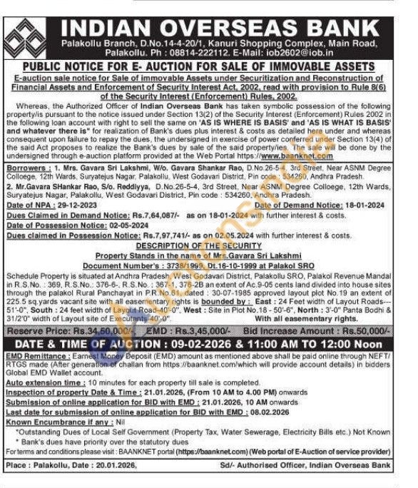 Schedule Property is situated at Andhra Pradesh, West Godavari District, Palakollu SRO, Palakol Revenue Mandal in R.S.No. 369, R.S.No. 376-6-, R.S.No. 367-1, 376-28 an extent of Ac.9-05 cents land divided into house sites. through the palakol Rural Panchayat in PR.No.61, dated: 30-07-1985 approved layout plot No. 19 an extent of 225.5 sq.yards vacant site with all easementary rights is bounded by: East: 24 Feet width of Layout Roads--51-0", South: 24 feet width of Layout Road-40-0", West: Site in Plot No. 18-50-6", North: 3-0" Panta Bodhi & 31/2'0" width of Layout site of Executants-40-0"