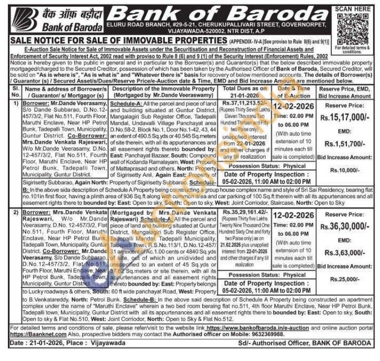 Mortgaged by Mrs.Dande Venkata Rajeswari) Schedule-A: All the parcel and piece of land and building situated at Guntur District, Mangalagiri Sub Register Office, Tadepalli Mandal, Tadepalli Municipality, Tadepalli Town, R.S.No. 113/1, D.No. 12-457/31 an extent of Ac.1.00 cents or 4840 Sq.yds of site, out of which an unidivided and unspecified to an extent of 45 Sq.yds or 37.62 Sq.meters or site therein, with all its appurtenances and all easement rights