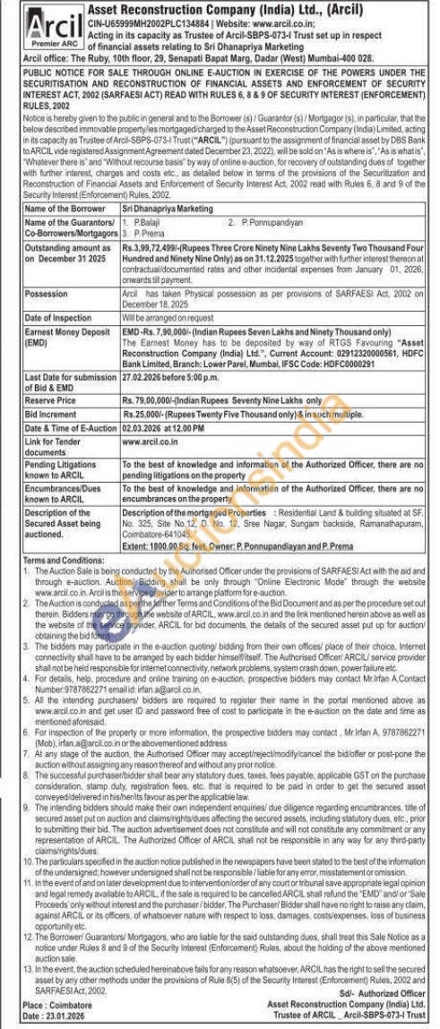 Description of the mortgaged Properties Resident Land&ulding situated at SF No. 325. Site No 12. D. No. 12. Sree Nagar, Surigam backside. Ramanathapram Coimbatore-641045. Extent 1000.00 Sq. feet Owner: P.Ponnugendizyan and P. Prema