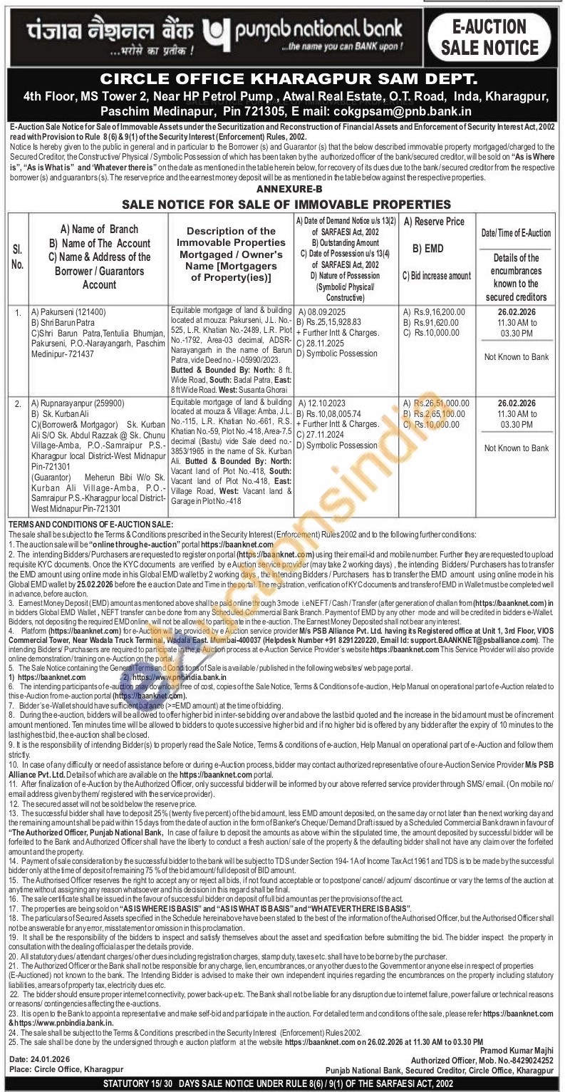 Equitable mortgage of land & building located at mouza: Pakurseni, JL. No.-525, L.R. Khatian No.-2489, L.R. Plot No.-1792, Area-03 decimal, ADSR-Narayangarh in the name of Barun Patra, vide Deed no.-1-05990/2023.Butted & Bounded By: North: 8 ft. Wide Road, South: Badal Patra, East: 8 ft Wide Road. West: Susanta Ghorai