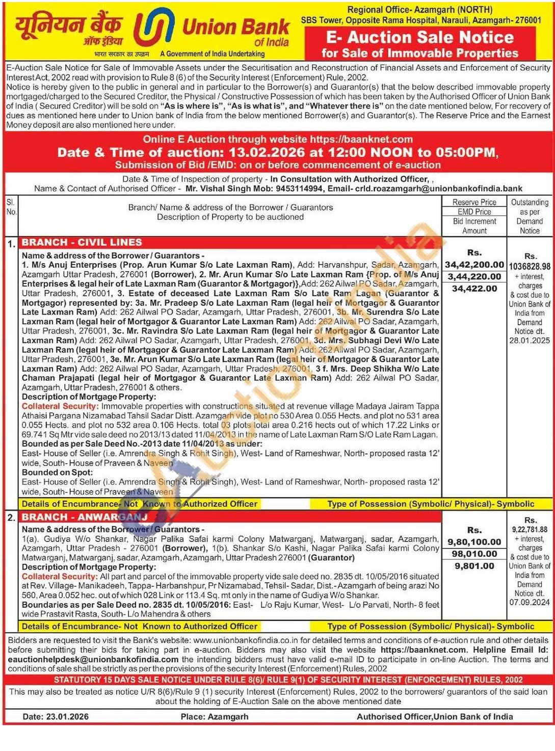 Authorised Officer - Mr. Vishal Singh Mobile No : 9453114994
