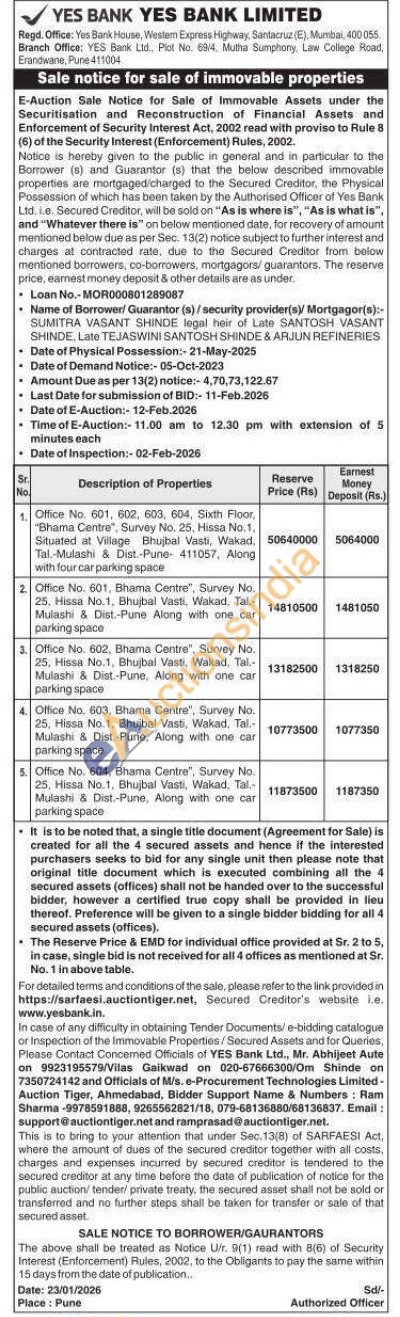Office No. 604, Bhama Centre", Survey No. 25. Hissa No.1, Bhujbal Vasti, Wakad, Tal,-Mulashi & Dist.-Pune, Along with one car parking space
