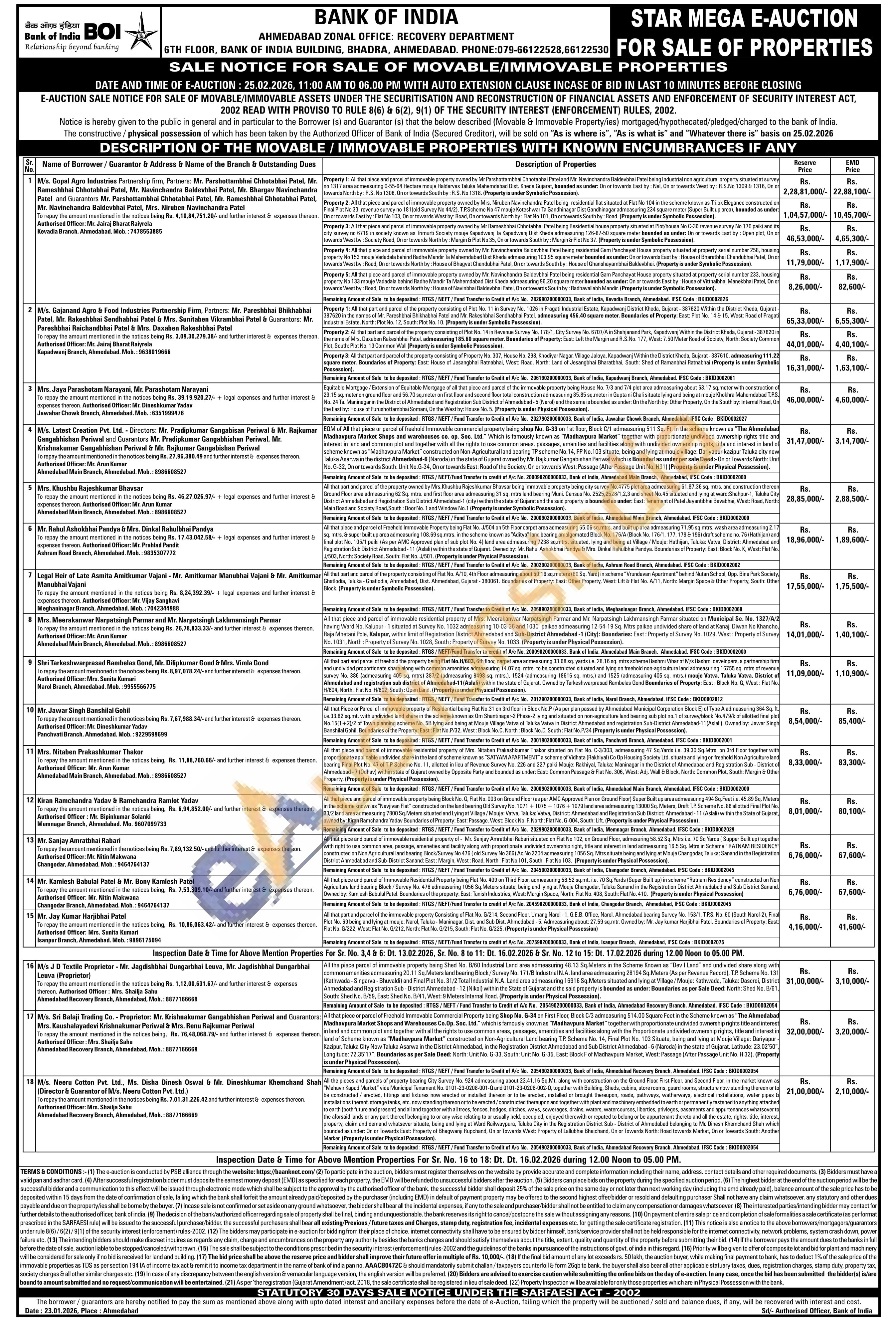 All that piece and parcel of immovable residential property of - Mr. Sanjay Amratbhai Rabari situated on Flat No 102, on Ground Floor, admesuring 58.52 Sq. Mtrs i.e. 70 Sq Yards ( Supper Built up) together with right to use common area, passage, ameneties and facility along with proportionate undivided ownership right, title and interest in land admeasuring 16.5 Sq. Mtrs in Scheme " RATNAM RESIDENCY" constructed on Non Agricultural land bearing Block/Survey No 476 ( old Survey No 366) Ac No 2204 admeasuring 1056 Sq. Mtrs situate being and lying at Mouje Changodar, Taluka: Sanand in the Registration District Ahmedabad and Sub-District Sanand: East : Margin,West : Road, North : Flat No 101, South : Flat No 103. (Property is under Physical Possession).