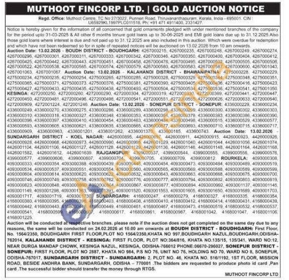 Muthoot Fincorp Ltd Gold Auctions Auction in Sundargarh