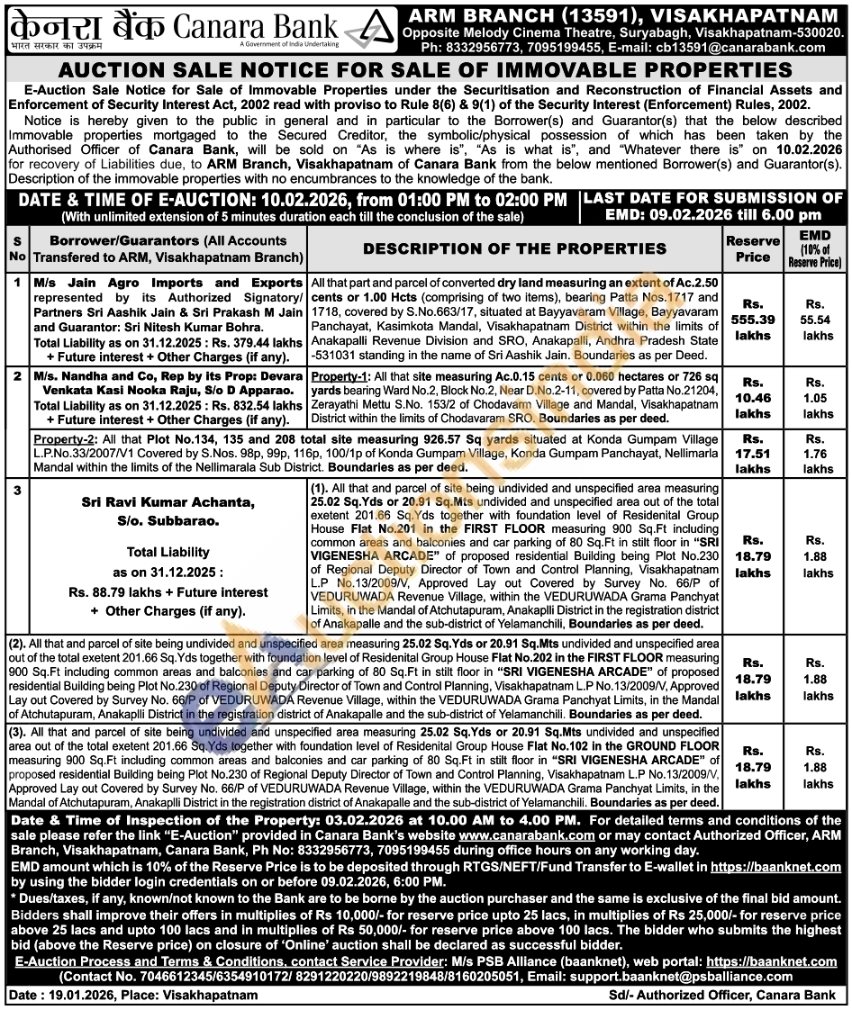 (3). All that and parcel of site being undivided and unspecified area measuring 25.02 Sq. Yds or 20.91 Sq.Mts undivided and unspecified area out of the total exetent 201.66 Sq. Yds together with foundation level of Residenital Group House Flat No.102 in the GROUND FLOOR measuring 900 Sq.Ft including common areas and balconies and car parking of 80 Sq.Ft in stilt floor in "SRI VIGENESHA ARCADE" of proposed residential Building being Plot No.230 of Regional Deputy Director of Town and Control Planning, Visakhapatnam L.P No.13/2009/V, Approved Lay out Covered by Survey No. 66/P of VEDURUWADA Revenue Village, within the VEDURUWADA Grama Panchyat Limits, in the Mandal of Atchutapuram, Anakaplli District in the registration district of Anakapalle and the sub-district of Yelamanchili