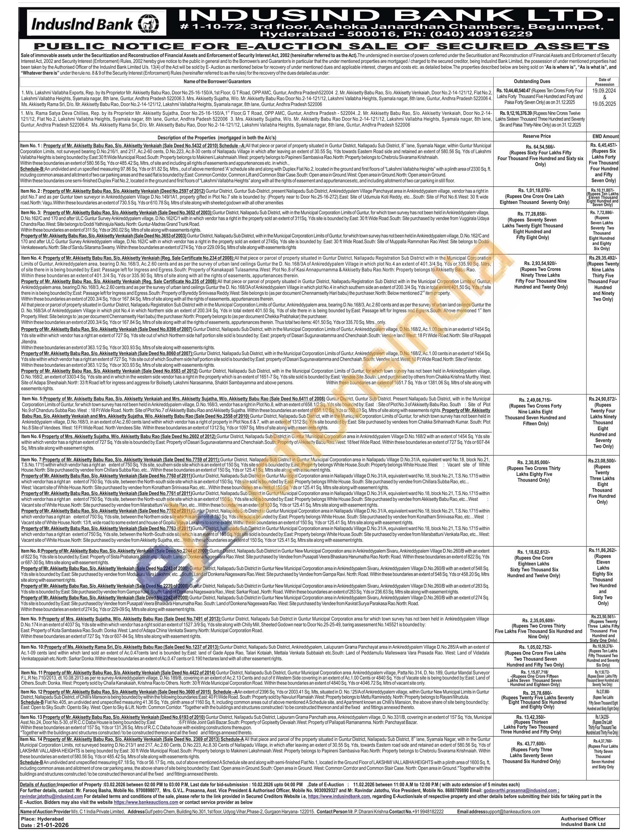 contact: Mr. Farooq Basha, Mobile No. 9700898077, Mrs. G.V.L. Prasanna, Asst. Vice President & Authorised Officer, Mobile No. 9030929327 and Mr. Ravindar Jatothu, Vice President, Mobile No. 8688709890