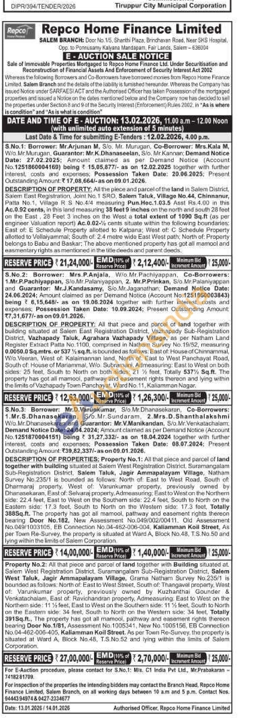 DESCRIPTION OF PROPERTY: All that piece and parcel of land together with building situated at Salem East Registration District, Vazhapady Sub-Registration District, Vazhapady Taluk, Agrahara Vazhapady Village, as per Natham Land Register Extract Patta No.1100, comprised in Natham Survey No. 19/52, measuring 0.0050.0 Sq.mtrs. or 537% sq.ft. is bounded as follows: East of: House of Chinnammal, W/o.Veeran, West of: Kalaimannan land, North of East to West Panchayat Road, South of: House of Mariammal, W/o. Subramani, Admeasuring: East to West on both sides: 25 feet, South to North on both sides: 21% feet, Totally 537% Sq.ft. The property has got all mamool, pathway and easement rights thereon and lying within the limits of Vazhapady Town Panchayat, Ward No. 11, Kaliamman Nagar.