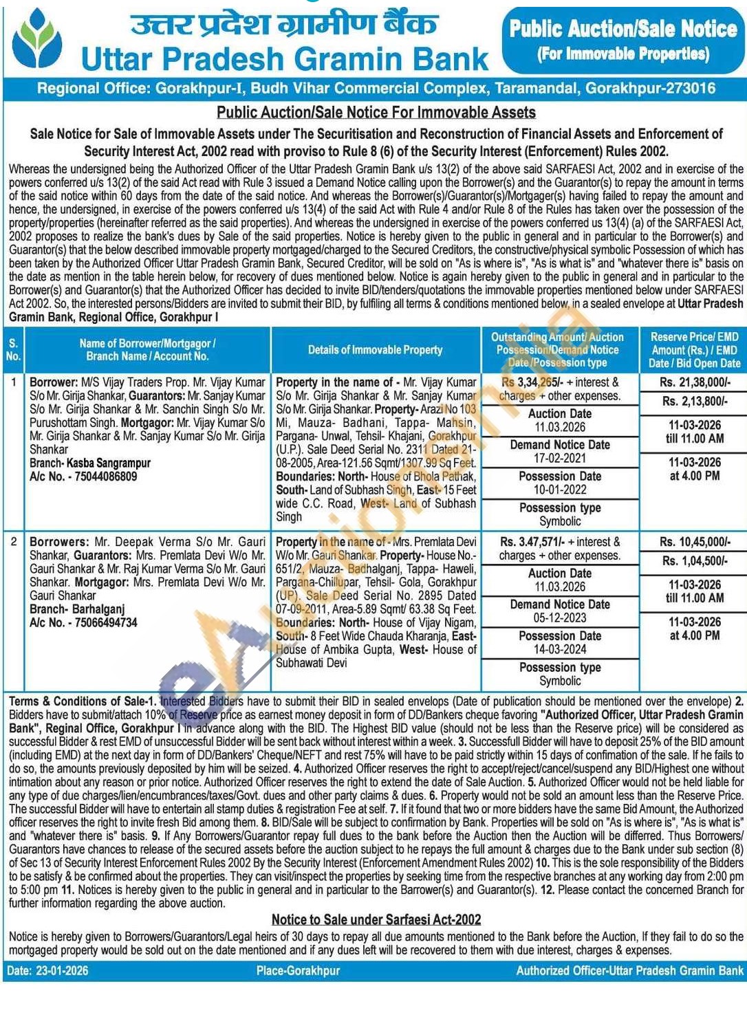 Property in the name of - Mrs. Premlata Devi WWo Mr. Gauri Shankar. Property-House No.-651/2, Mauza- Badhalganj, Tappa- Haweli, Pargana-Chillupar, Tehsil- Gola, Gorakhpur (UP). Sale Deed Serial No. 2895 Dated 07-09-2011, Area-5.89 Sqmt/ 63.38 Sq Feet. Boundaries: North- House of Vijay Nigam, South-8 Feet Wide Chauda Kharanja, East-House of Ambika Gupta, West House of Subhawati Devi