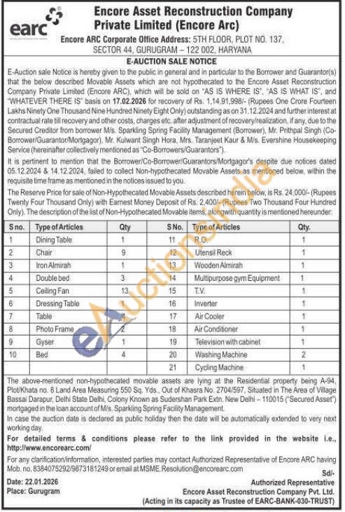 Dining Table - 1, Chair- 9, Iron Almirah - 1, Double bed- 3, Ceiling Fan- 13,Dressing Table - 1 and Other items