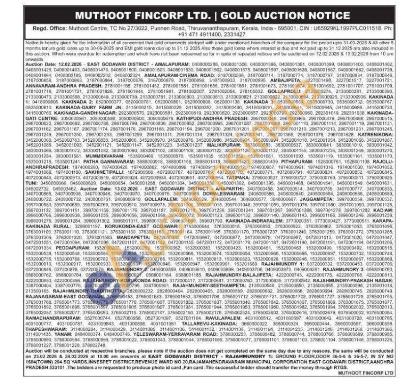 Muthoot Fincorp Ltd Gold Auctions Auction in Amalapuram
