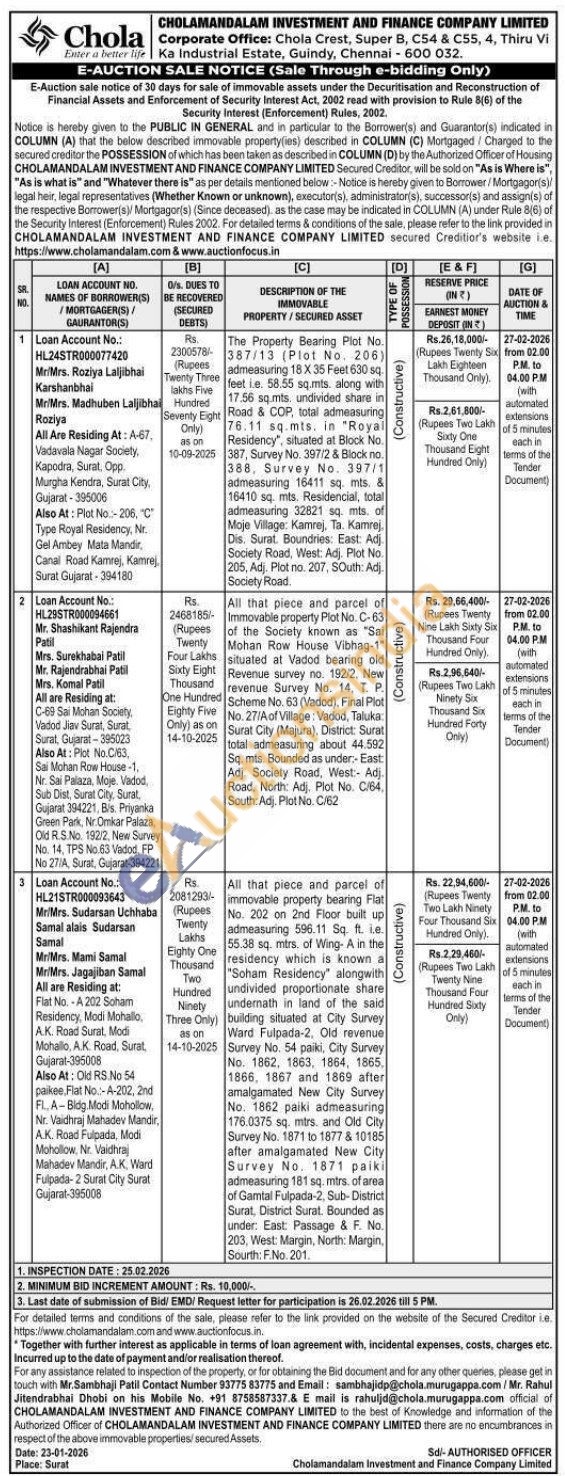 Mr. Sambhaji Patil Contact Number 93775 83775 and Email: sambhajidp@chola.murugappa.com/Mr. Rahul Jitendrabhai Dhobi on his Mobile No. +91 8758587337.& E mail is rahuljd@chola.murugappa.com