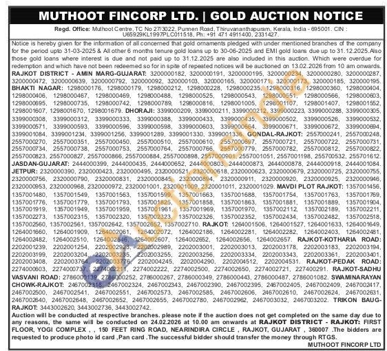 Muthoot Fincorp Ltd Gold Auctions Auction in Rajkot
