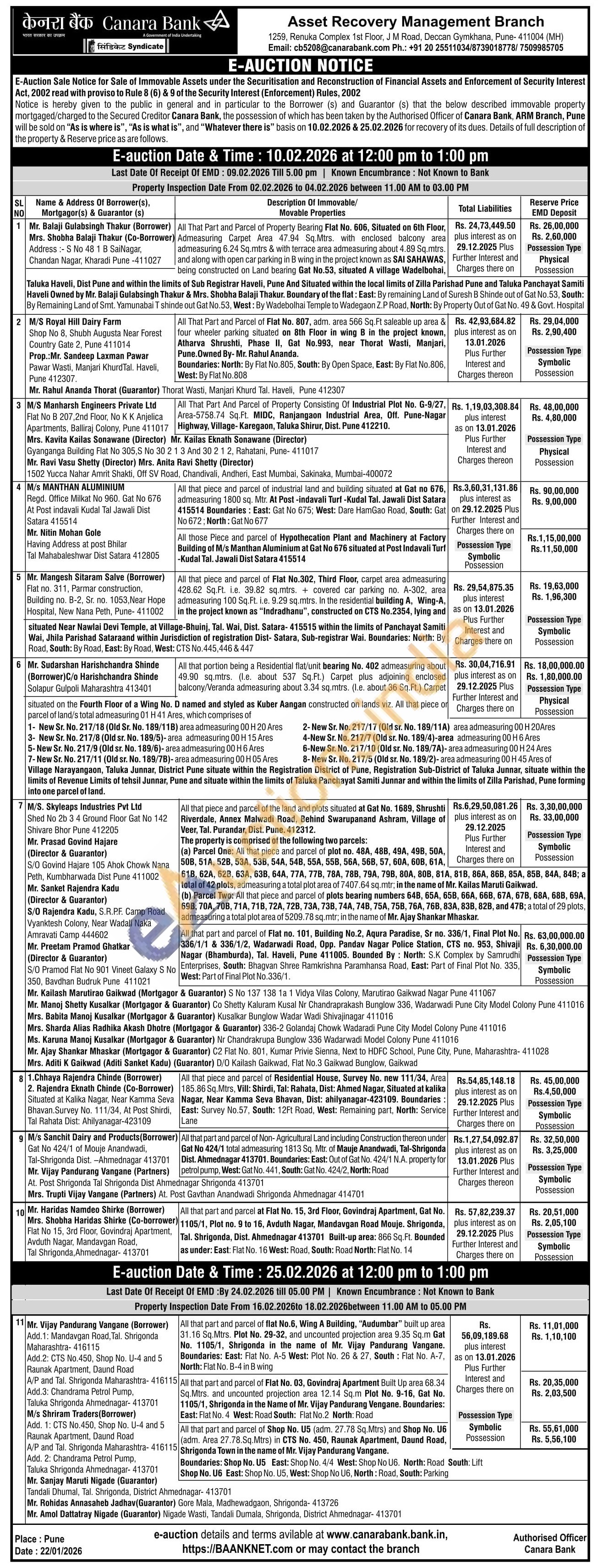 All that part and parcel of Flat No. 03, Govindraj Apartment Built Up area 68.34 Sq.Mtrs. and uncounted projection area 12.14 Sq.m Plot No. 9-16, Gat No. 1105/1, Shrigonda in the Name of Mr. Vijay Pandurang Vengane. Boundaries: East: Flat No. 4 West: Road South: Flat No.2 North: Road