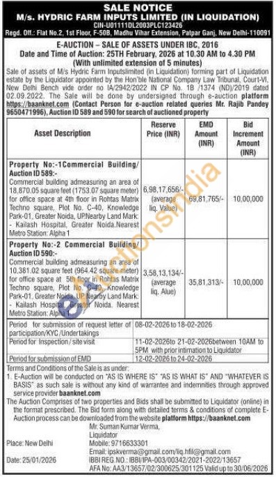 Property No:-1Commercial Building/Auction ID 589:- Commercial building admeasuring an area of 18,870.05 square feet (1753.07 square meter) for office space at 4th floor in Rohtas Matrix Techno square, Plot No. C-40, Knowledge Park-01, Greater Noida, UPNearby Land Mark Kailash Hospital, Greater Noida Nearest Metro Station: Alpha 1