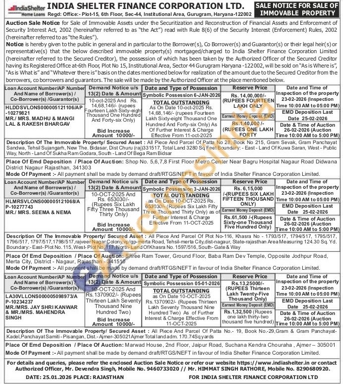 Authorized Officer Mr. Devendra Singh Mobile No : 9460733020 / Mr. HIMMAT SINGH RATHORE Mobile No : 8290680920