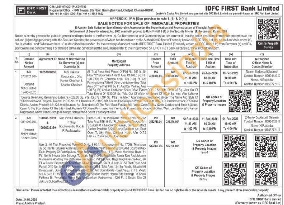 All That Piece And Parcel Of Flat No. 505 in 4th Floor "C" Block With A Plinth Area Of 840.0 Sq. Ft, 100.0 Sq. Ft. Common Area, 100.0 Sq. Ft. Car Parking Along With All Other Joint Amenities (Total Area Of The Flat 940 Sq. Ft. And Car Parking Area 100 Sq. Ft.) And An Undivided Share Of An Extent Of 41.0 Sq. Yds. Or 34.28 Sq. Mtrs. Out Of Total Extent Of 4623.37 Sq. Yds. Out Of Which An Extent Of 100.0 Sq. Yds. Was Leftover Towards Road And Remaining Extent is 4522.26 Sq. Yds. Or 3781.197 Sq. Mtrs., In Which Apartments Constructed Under The Name And Style Of "Chalamaiah And Telaprolu Towers In R.S.No. 511, Door No 20-149/C 505 Situated in Gollapudi Within The Limits Of S.R.O. Ibrahimpatnam Of Krishna District. Andhra Pradesh-521225, And Bounded As: Boundaries Of The Flat-East: Flat No. 504, West: Open To Sky, North Corridor And Steps & South: Open To Sky Boundaries Of The Site-East: Property Of Others Purchased From Yenigalla Pumachandra Rao And Other, West: Land Belong To Kamati Nageswara, North: Land Belongs To Muppa Narayanna & South. Panchayat Road