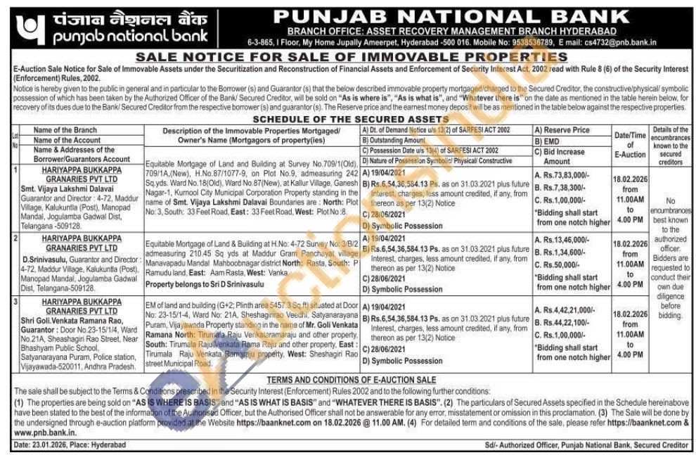 Equitable Mortgage of Land & Building at H.No: 4-72 Survey No: 3/B/2 admeasuring 210.45 Sq yds at Maddur Gram Panchayat village Manavapadu Mandal Mahboobnagar district North: Rasta, South: P Ramudu land, East: Aam Rasta, West: Vanka. Property belongs to Sri D Srinivasulu