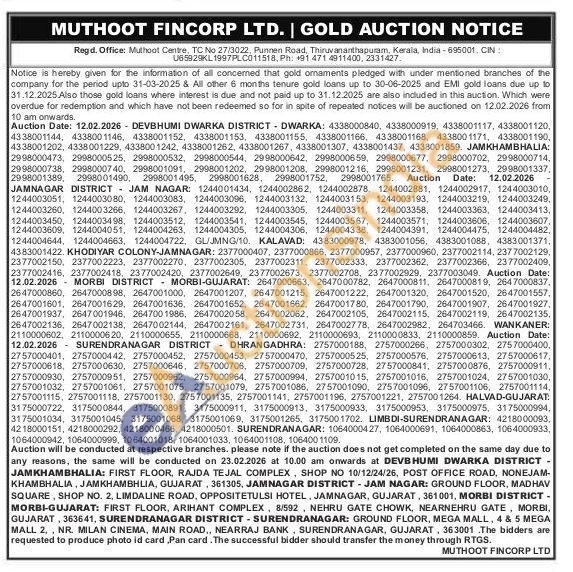 Muthoot Fincorp Ltd Gold Auctions Auction in Dev Bhumi Dwarka