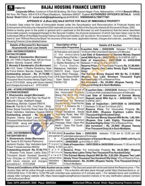 All that piece and parcel of the Immovable Property Being Flat No. 1 101, 1st Floor, Tower 3. Radhe Residency. Nr Air Force Station, Makarpura, Vadodara 390010 East. Open Space, West: Passage. Lift & Open Space North Open Space South Flat No 1 102