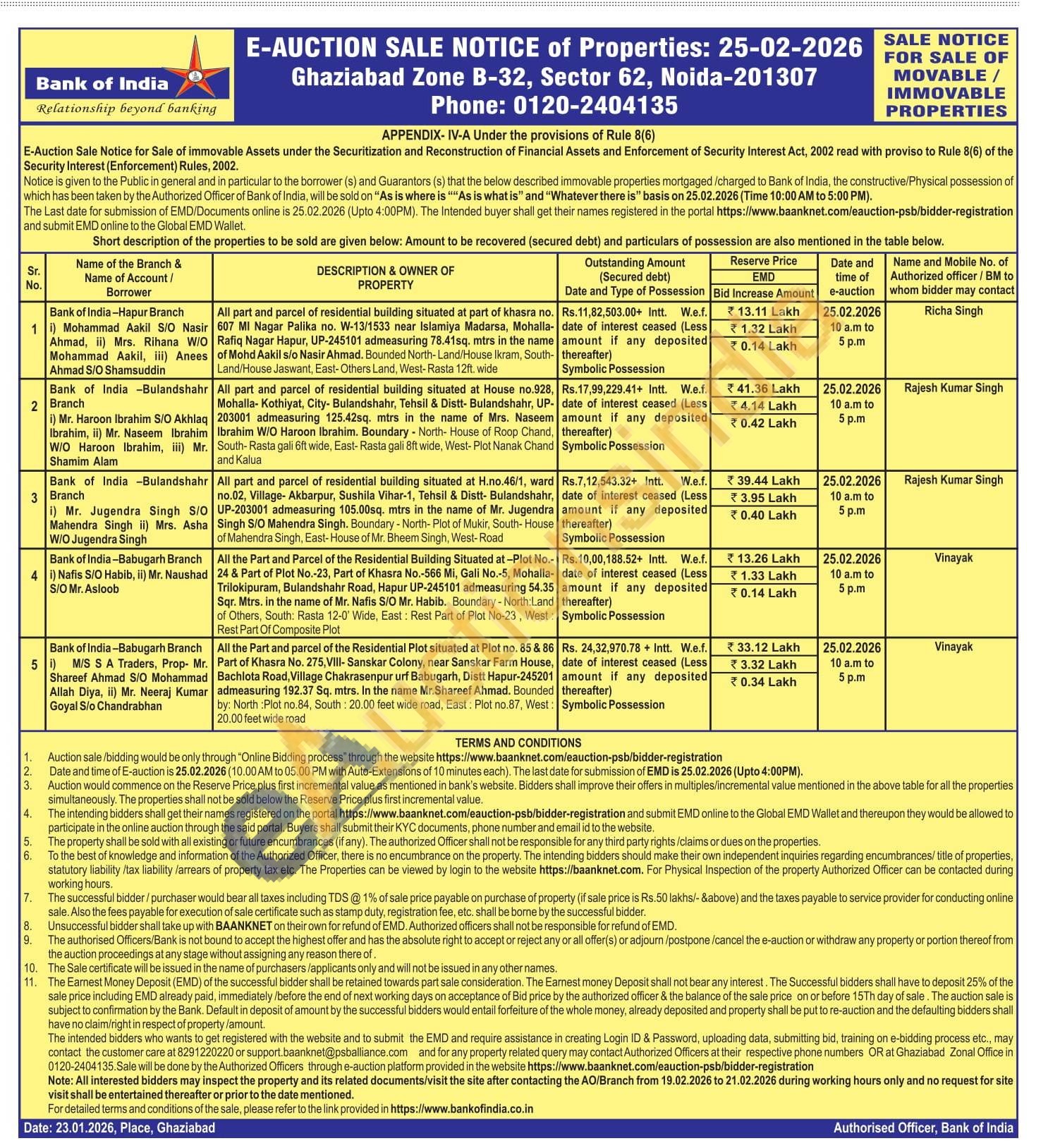 All part and parcel of residential building situated at part of khasra no. 607 MI Nagar Palika no. W-13/1533 near Islamiya Madarsa, Mohalla-Rafiq Nagar Hapur, UP-245101 admeasuring 78.41sq. mtrs in the name of Mohd Aakil sio Nasir Ahmad. Bounded North-Land/House Ikram, South-Land/House Jaswant, East-Others Land, West-Rasta 12ft, wide