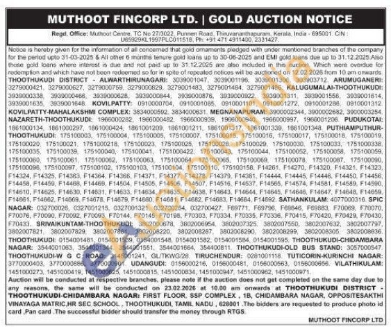 Muthoot Fincorp Ltd Gold Auctions Auction in Thiruvananthapuram