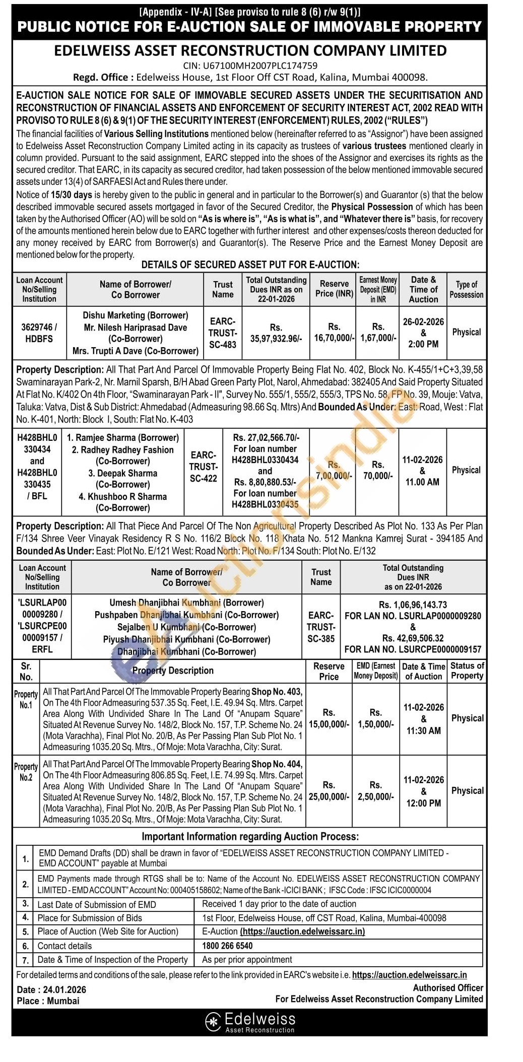 Property Description: All That Piece And Parcel Of The Non Agricultural Property Described As Plot No. 133 As Per Plan F/134 Shree Veer Vinayak Residency R S No. 116/2 Block No. 118 Khata No. 512 Mankna Kamrej Surat-394185 And Bounded As Under: East: Plot No. E/121 West: Road North: Plot No. F/134 South: Plot No. E/132