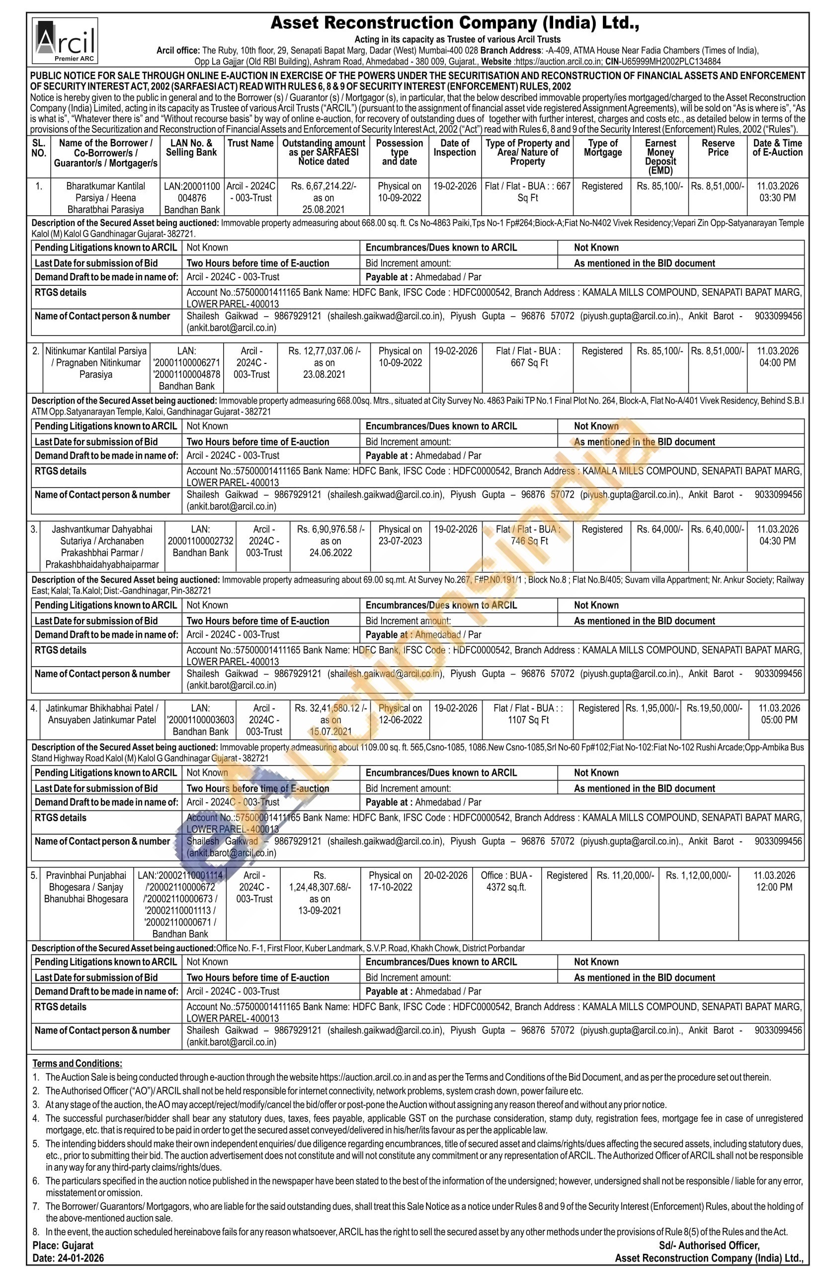 Shailesh Gaikwad 9867929121 (shailesh.gaikwad@arcil.co.in), Piyush Gupta 96876 57072 (piyush.gupta@arcil.co.in), Ankit Barot :9033099456 (ankit.barot@arcil.co.in)
