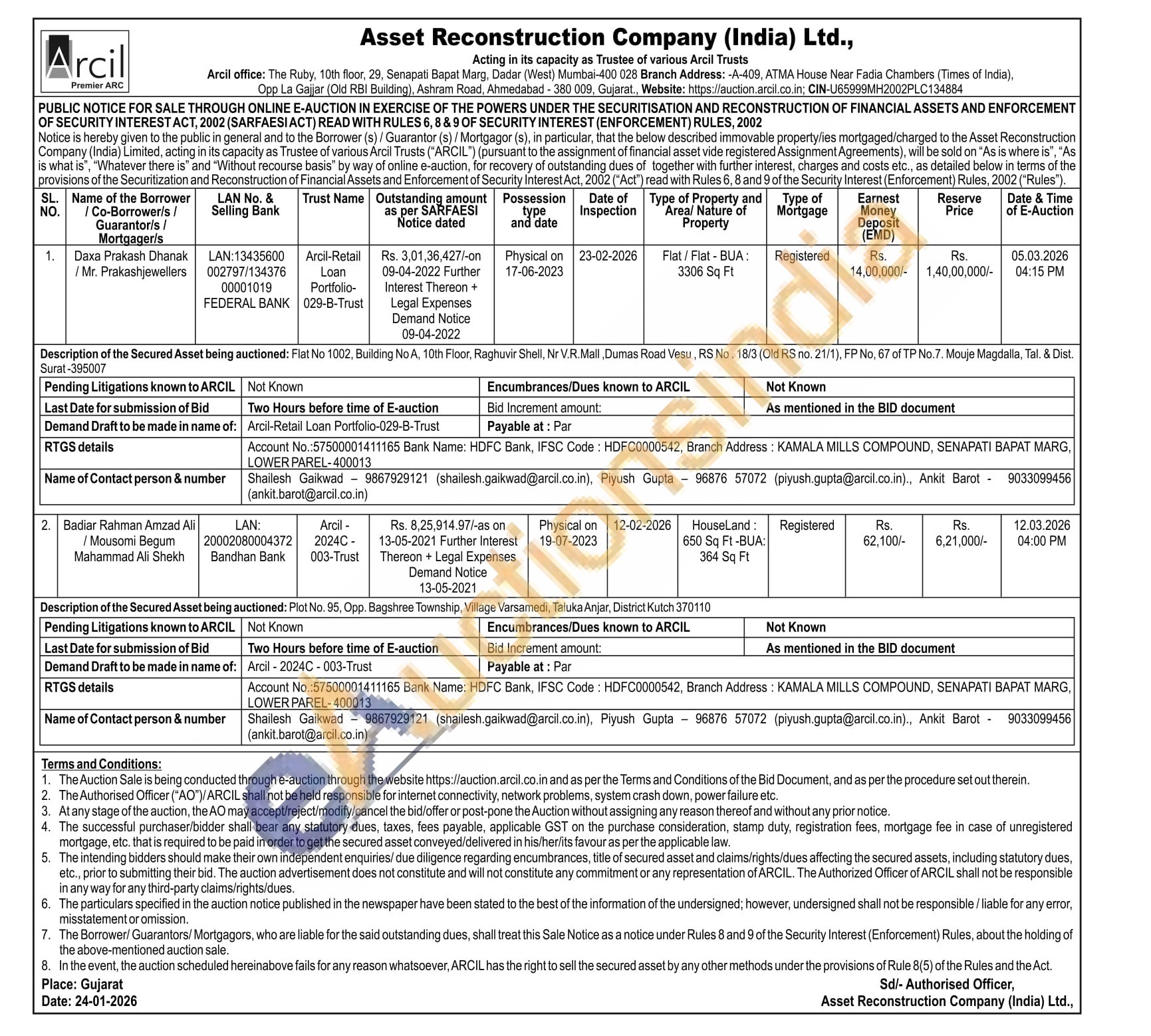 Shailesh Gaikwad 9867929121 (shailesh.gaikwad@arcil.co.in), Piyush Gupta 96876 57072 (piyush.gupta@arcil.co.in)., Ankit Barot 9033099456 (ankit.barot@arcil.co.in)