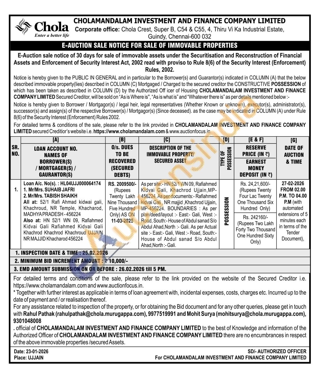Rahul Pathak (rahulpathak@chola.murugappa.com), 9977519991 and Mohit Surya (mohitsurya@chola.murugappa.com), 9301048008