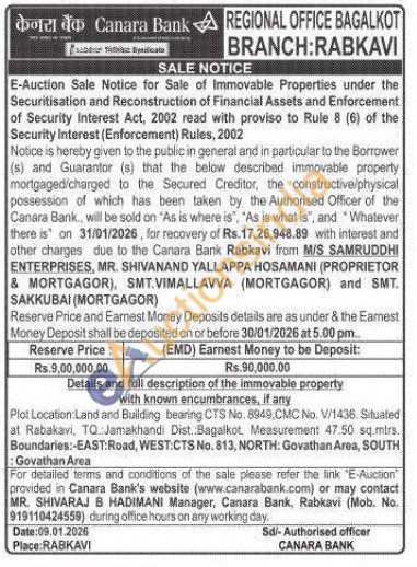 Plot Location Land and Building bearing CTS No. 8949,CMC No, V/1436. Situated at Rabakavi, TO Jamakhandi Dist. Bagalkot, Measurement 47.50 sq.mirs. Boundaries:-EAST:Road, WEST:CTS No. 813, NORTH: Govathan Area, SOUTH Govathan Area