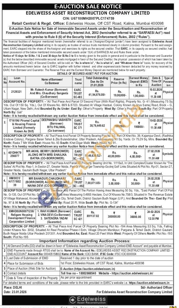 DESCRIPTION OF PROPERTY: "All That Piece And Parcel Of Property Bearing Unit No. 1/115a3, In Unit Complex Cluster Known As The Suites At Plot No. Rep-1, In Sector-27, Greater Noida, Part Of Plot Larger Township-Godrej Golf Links Situated At Plot No. Rp-01, Sector-27, Greater Noida, Gautam Budh Nagar, Uttar Pradesh" Note:- It is hereby recalled/withdrawn any earlier Auction Notice from immediate effect and this notice shall be considered