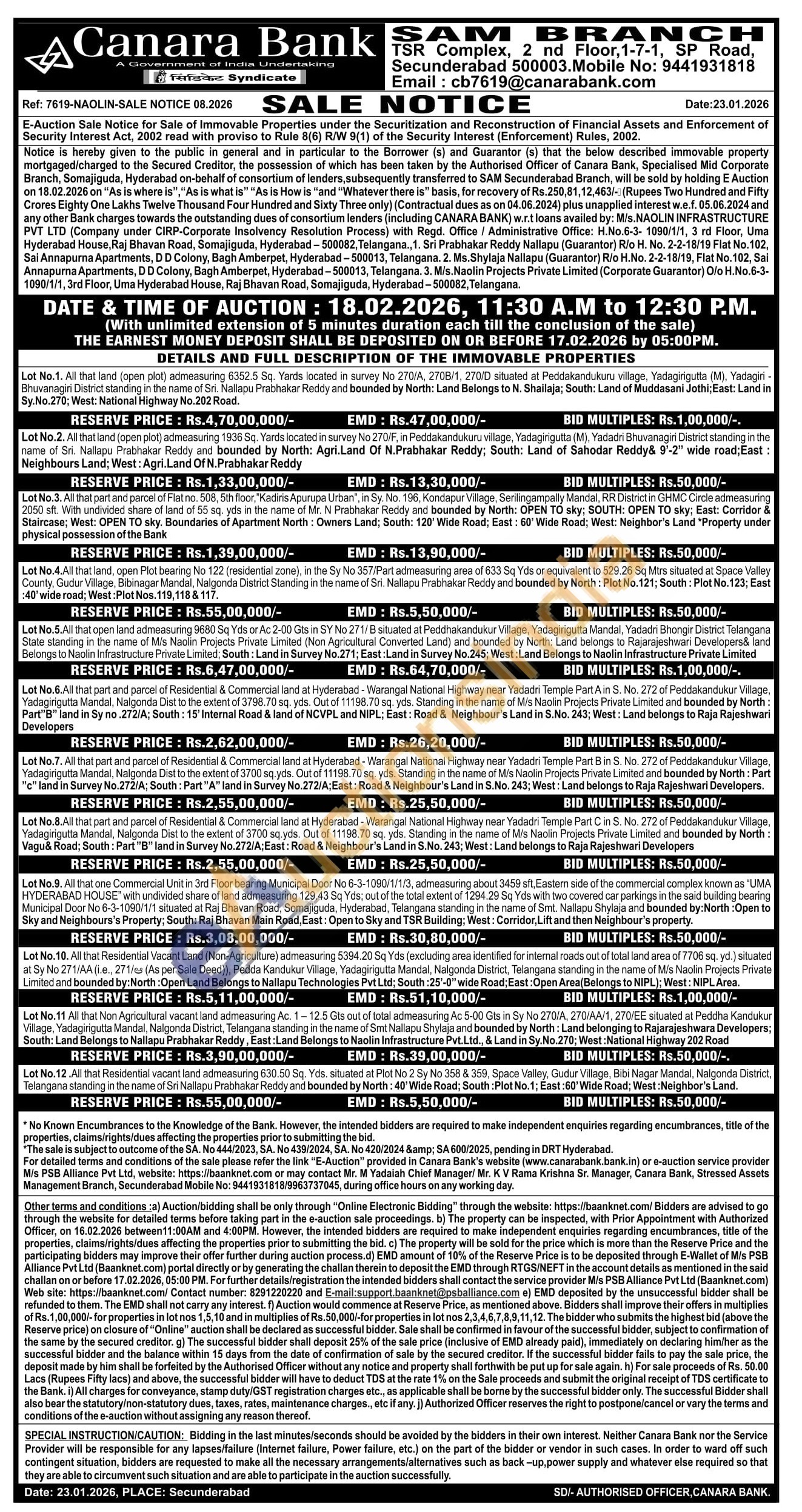 Contact Mobile No: 9441931818 Email: cb7619@canarabank.com