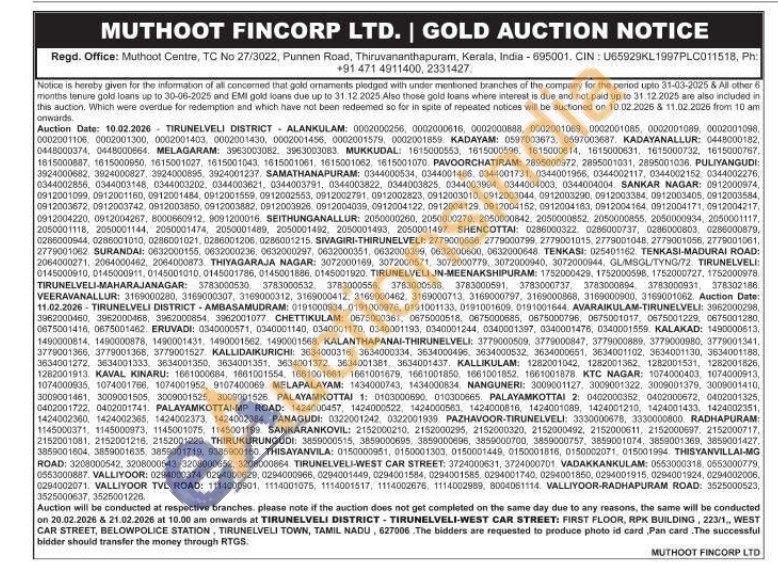 Muthoot Fincorp Ltd Gold Auctions Auction in Tirunelveli
