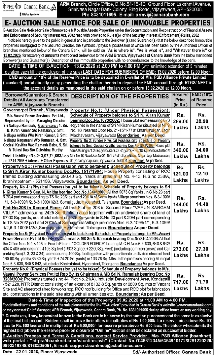 4) All that 5075 Sq Yards, in S.No.23 part & 20/4 part corresponding to TS No.20/2 part and 20/1/A of Somajiguda Village premises Nos. 6-3-1099/1/1, 6-3-1099/1/2, 6-3-1099/1/2/3, Somajiguda, Hyderabad, Telangana. Boundaries: As per Deed. Flat No.208 in Second Floor: All that Flat no 208 in Second Floor "VARUN SARGAM VILLA" admeasuring 2425 Sq. ft. plinth area together with an undivided share of land of 97.00 Sq. yards, out of total extent of 5075 Sq. yards in S.No.23 part & 20/4 part corresponding to TS No.20/2 part and 20/1/A of Somajiguda Village premises Nos. 6-3-1099/1/1, 6-3-1099/1/2,6-3-1099/1/2/3, Somajiguda, Hyderabad, Telangana. Boundaries: As per Deed