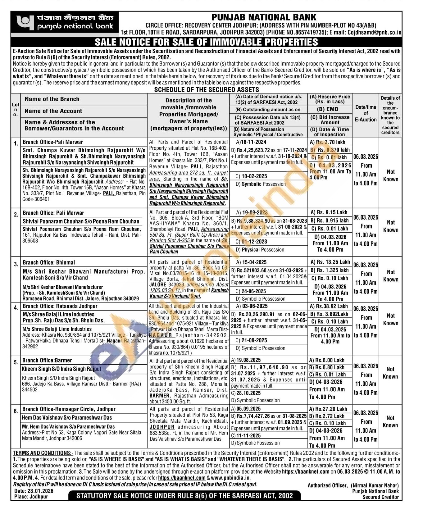 All Parts and Parcel of Residential Property situated at Flat No. 16B-402, Floor No. 4th, Tower 16B, "Aasan Homes" at Khasra No. 333/7, Plot No.1 Revenue Village- PALI, Rajasthan Admeasuring area 278 sq. ft. carpet area. Standing in the name of Sh. Bhimsingh Narayansingh Rajpurohit S/o Narayansingh Shivsingh Rajpurohit and Smt. Champa Kuwar Bhimsingh Rajpurohit W/o Bhimsingh Rajpurohit