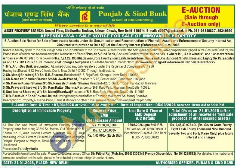 All That Part And Parcel Of Immovable Property (Industrial Property) Area Measuring 32210 Sq. Meters, Out Of Khata No.5, Khasra No. 9, Area 0.8290 Hectare & Khasra No. 79, Area Measuring 23920 Hectare Situated At Industrial Zone At Village Dahyaki Pargana At Mnglore, Tehsil-Roorkee, District-Haridwar, Uttrakhand