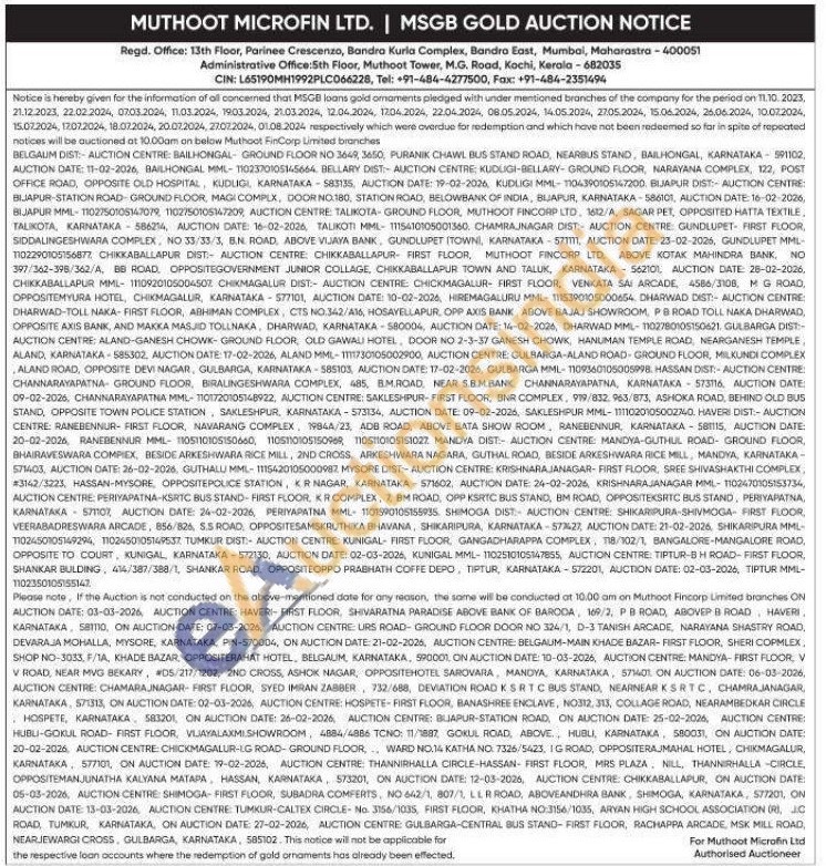MUTHOOT MICROFIN LIMITED Gold Auctions Auction in Belagavi