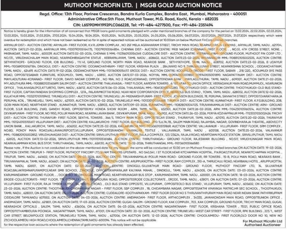 MUTHOOT MICROFIN LIMITED Gold Auctions Auction in Ariyalur