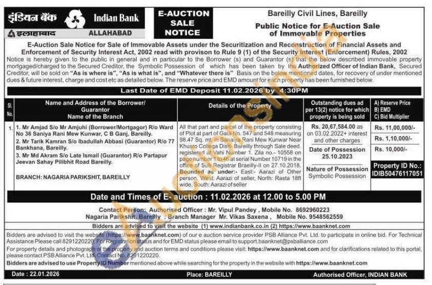 All that part and parcel of the property consisting of Plot at part of Gata No. 547 and 548 measuring 98.47 Sq. mt. in Sanaiya Rani Mew Kunwar Near Khusro Collega Distt-Bareilly through Sale deed. registered at Vahi Number 1. Zila no.- 10558 on page number 1 to 46 at serial Number 10719 in the office of Sub Registrar Brailly-Ion 27.10.2018. person, West: Aarazi of seller, North: Rasta 18ft wide, South: Aarazi of seller