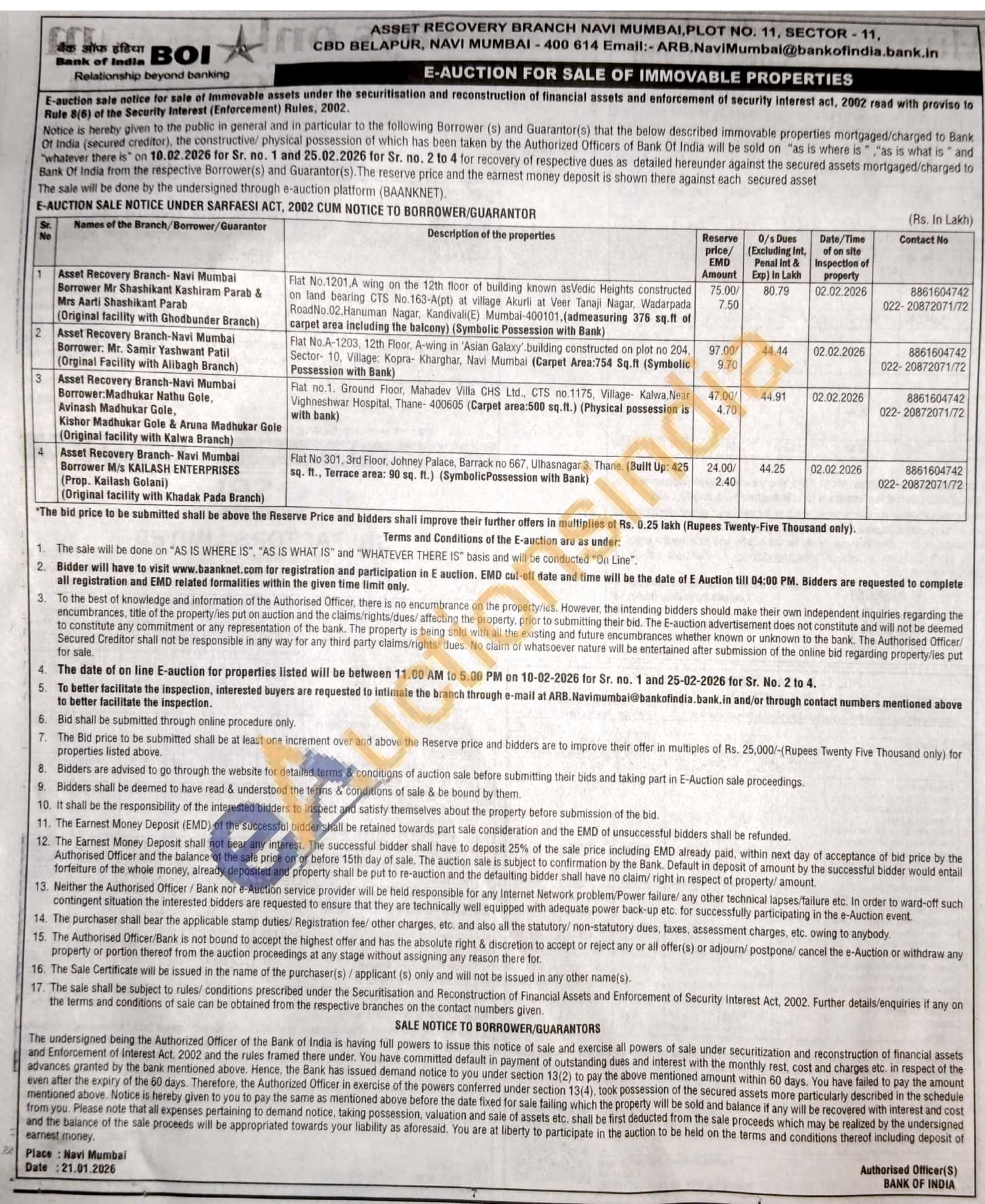 Flat No.1201 A wing on the 12th floor of building known asVedic Heights constructed on land bearing CTS No.163-A(pt) at village Akurli at Veer Tanaji Nagar, Wadarpada Road No.02 Hanuman Nagar, Kandivali(E) Mumbai-400101,(admeasuring 375 sq.ft of carpet area including the balcony) (Symbolic Possession with Bank)