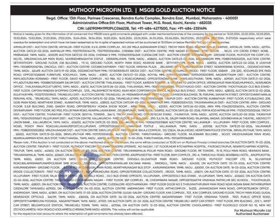 Muthoot Fincorp Ltd Gold Auctions Auction in Ariyalur