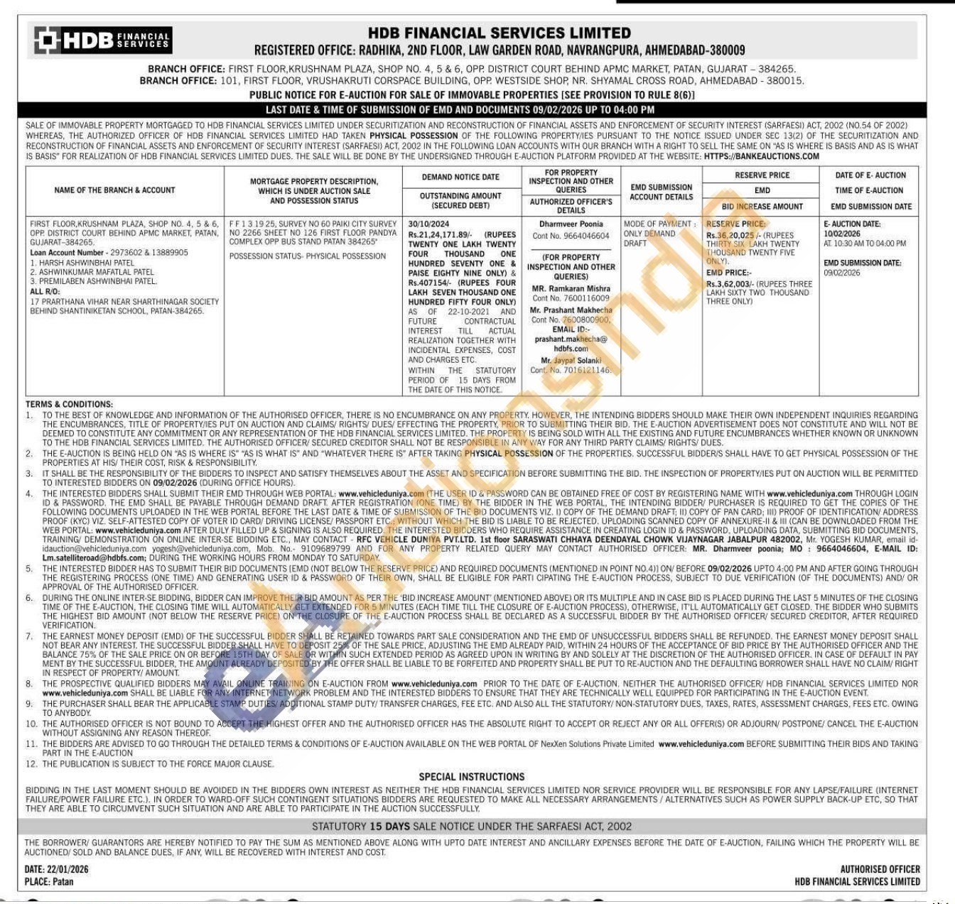 FF131925, SURVEY NO 60 PAIKI CITY SURVEY NO 2266 SHEET NO 126 FIRST FLOOR PANDYA COMPLEX OPP BUS STAND PATAN 384265 POSSESSION STATUS PHYSICAL POSSESSION