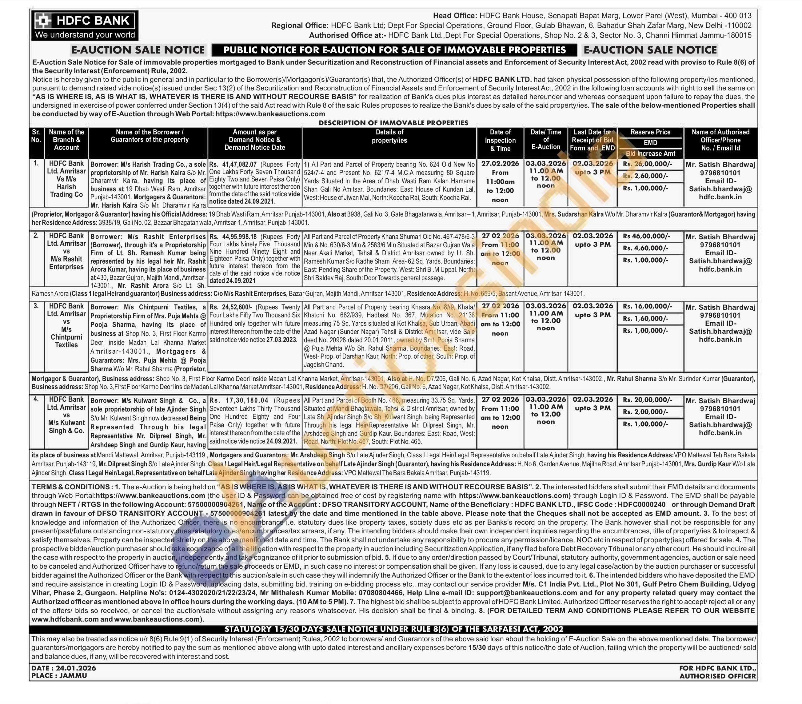 Mr. Satish Bhardwaj : 9796810101 Email ID-Satish bhardwaj@ hdfc.bank.in