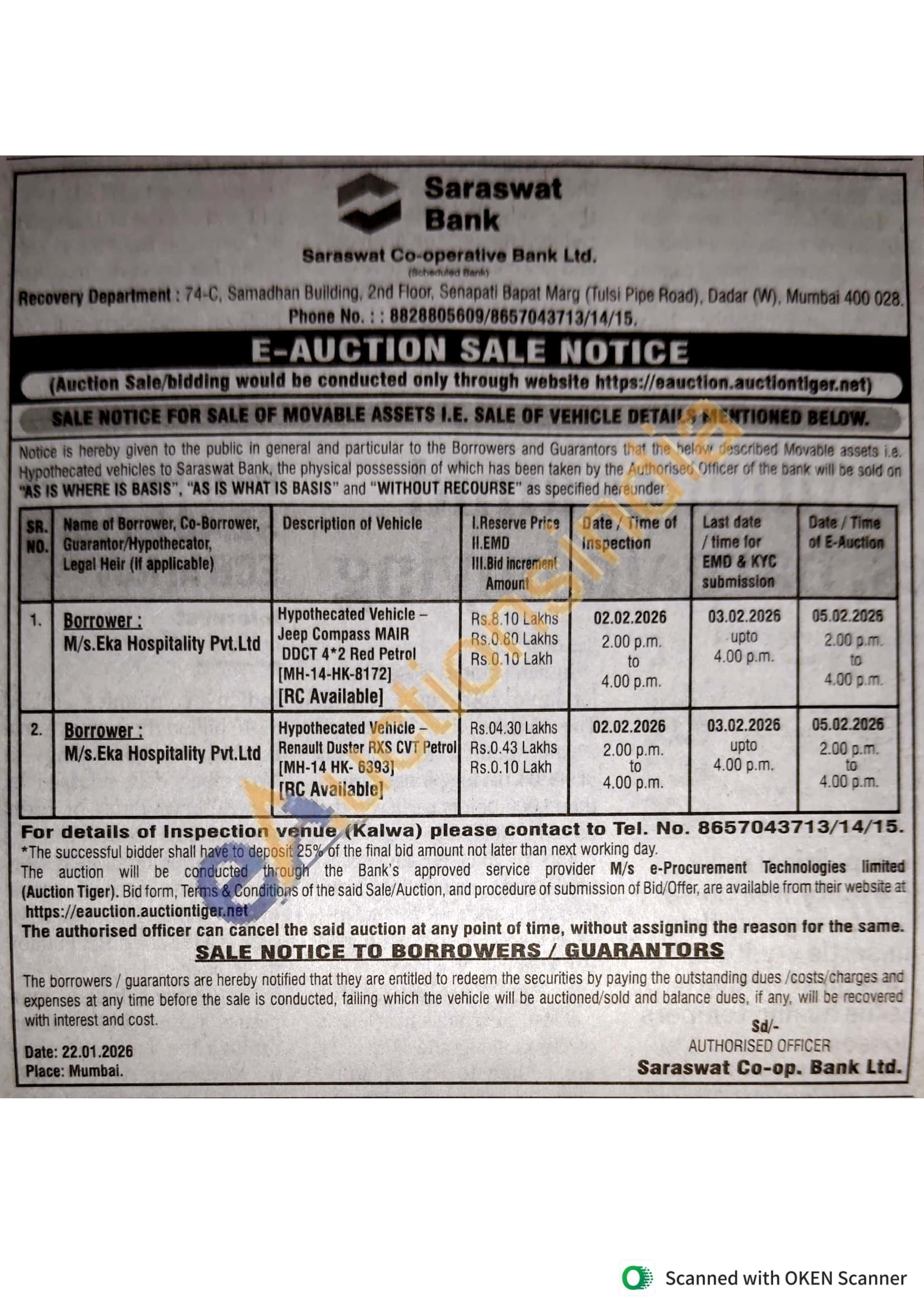 Contact to Tel. No. : 8657043713/14/15