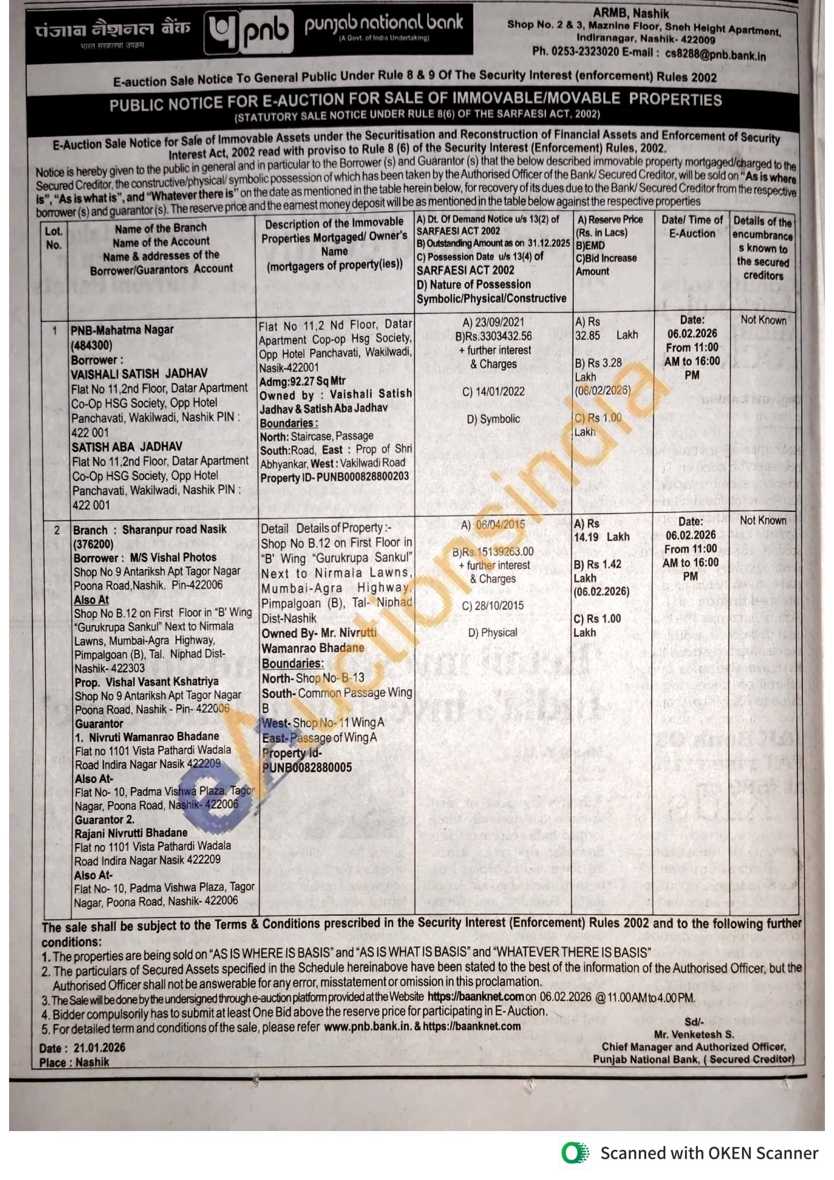 Contact Ph. 0253-2323020 E-mail: cs8288@pnb.bank.in