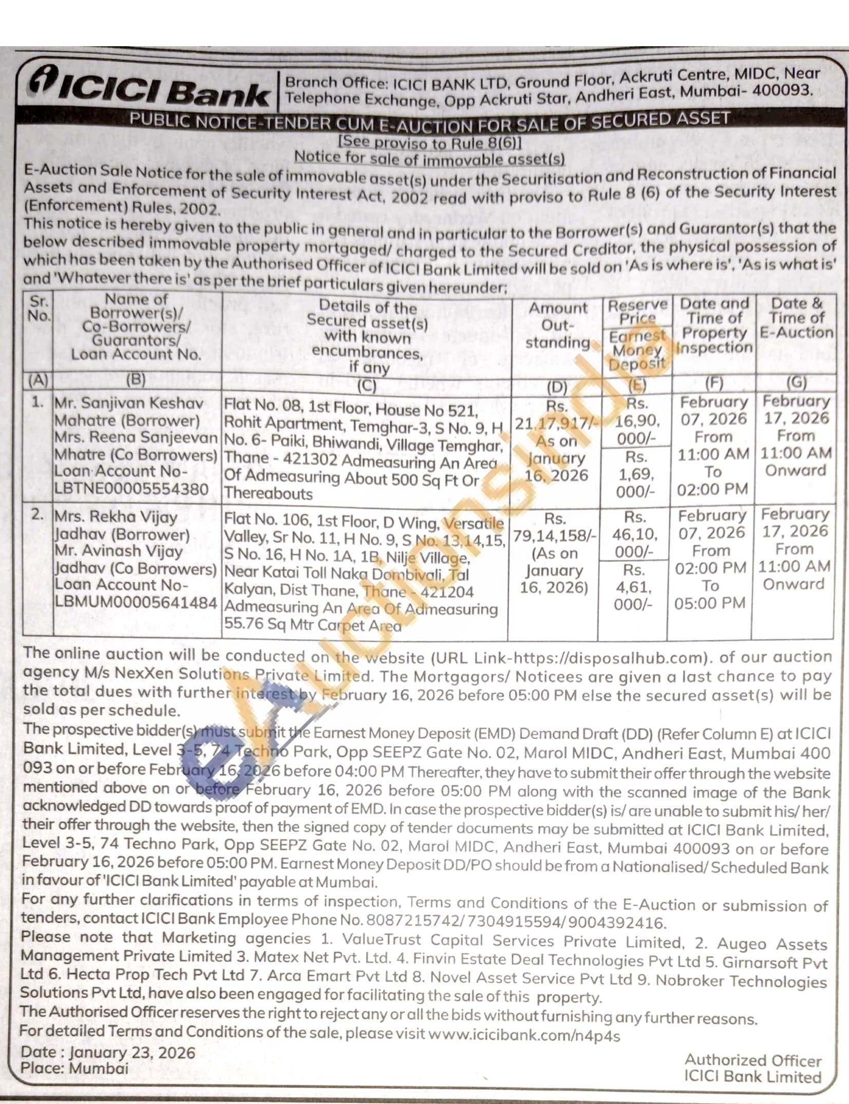 Flat No. 106, 1st Floor, D Wing, Versatile Valley, Sr No. 11, H No. 9, S No. 13,14,15, S No. 16, H No. 1A, 1B, Nilje Village, Near Katai Toll Naka Dombivali, Tal Kalyan, Dist Thane, Thane-421204 Admeasuring An Area Of Admeasuring 55.76 Sq Mtr Carpet Area
